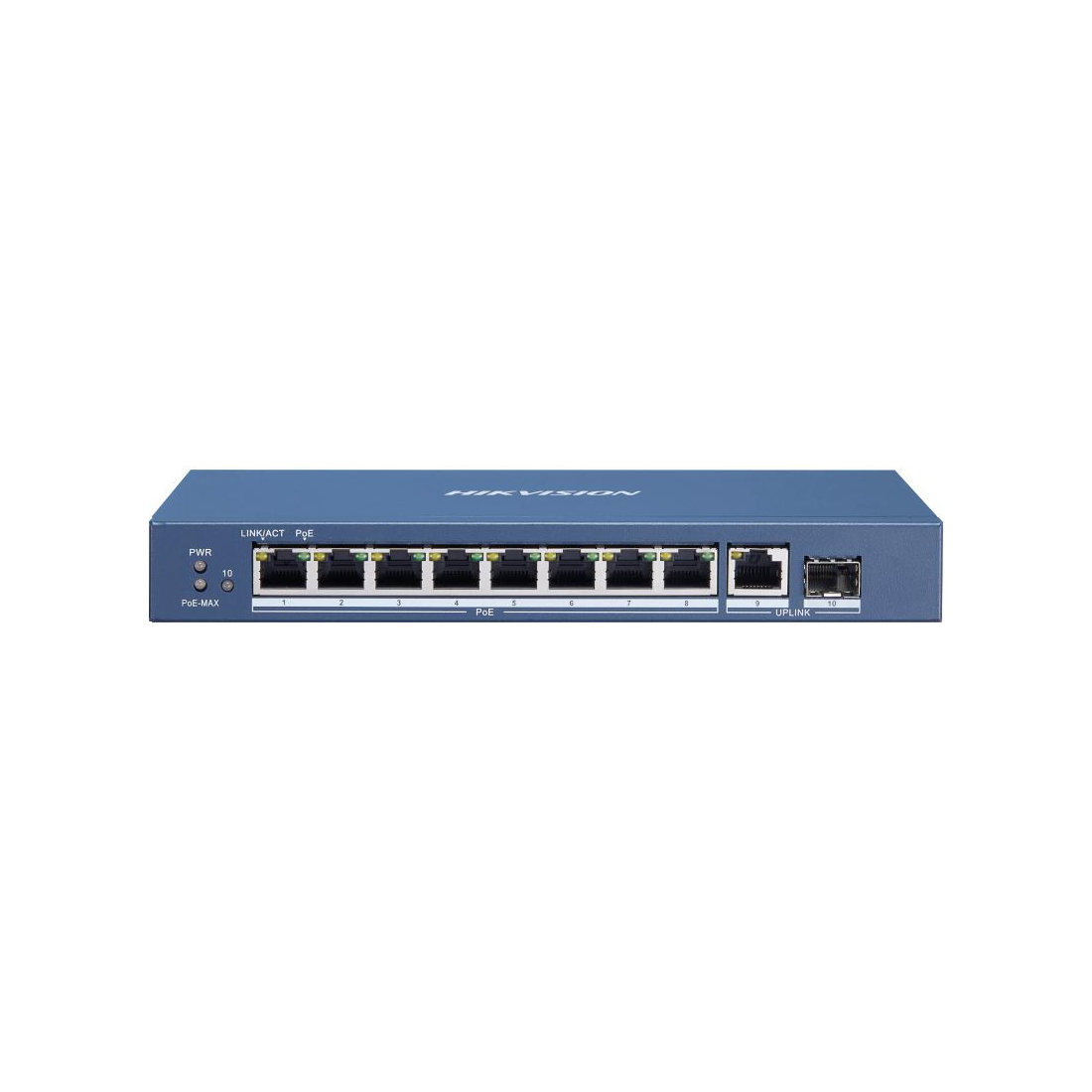Порты: 8 x гигабитных портов PoE, 1 x гигабитный порт RJ45, 1 x гигабитный оптоволоконный порт